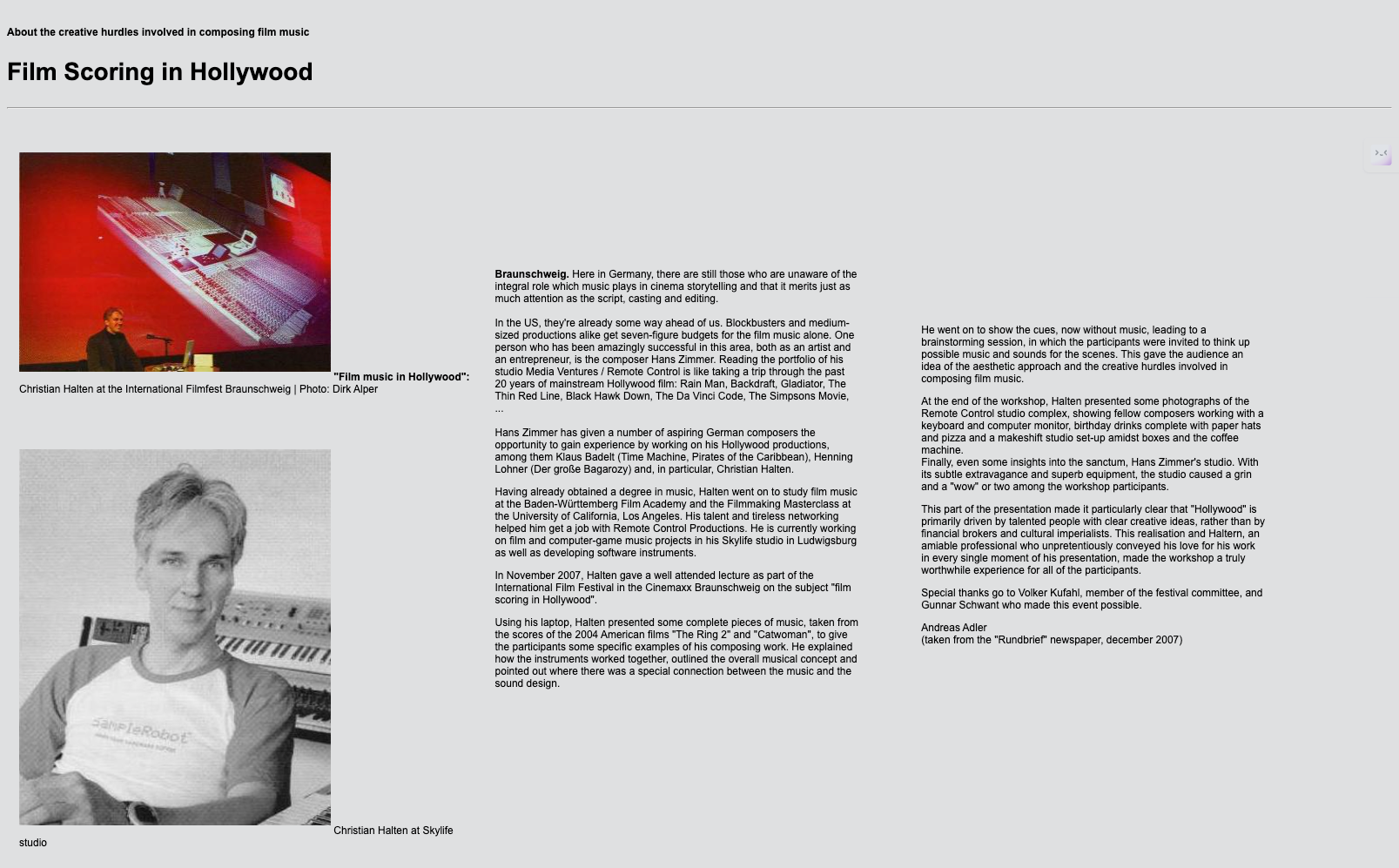 Halten’s workshop as part of the International Film Festival Braunschweig provided detailed insights into the work performed in Hans Zimmer’s studio complex.